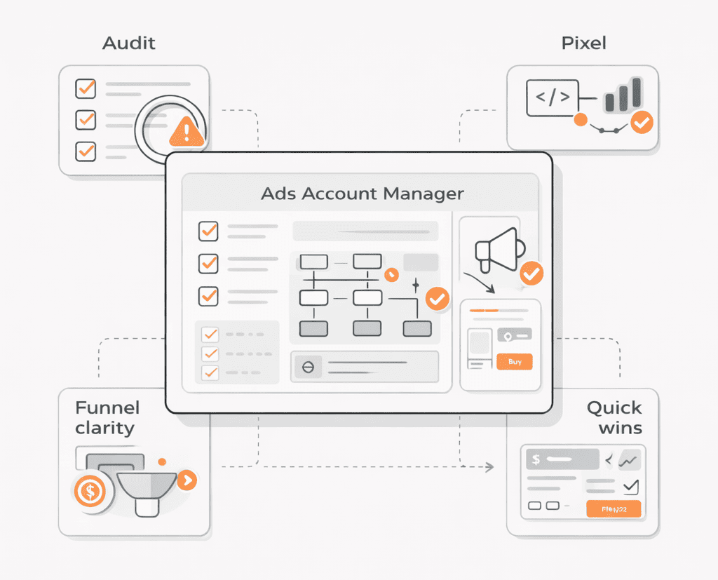 Account structure, tracking, and campaign hygiene. We look for wasted spend, overlap, and broken signals.